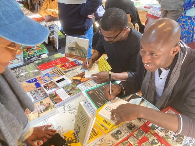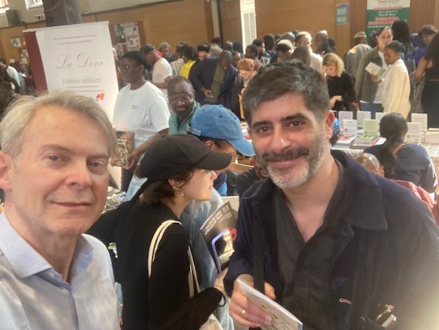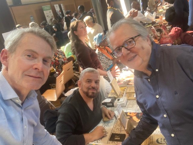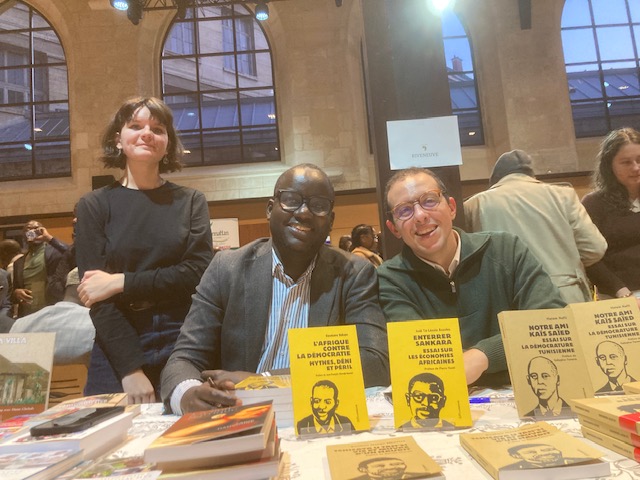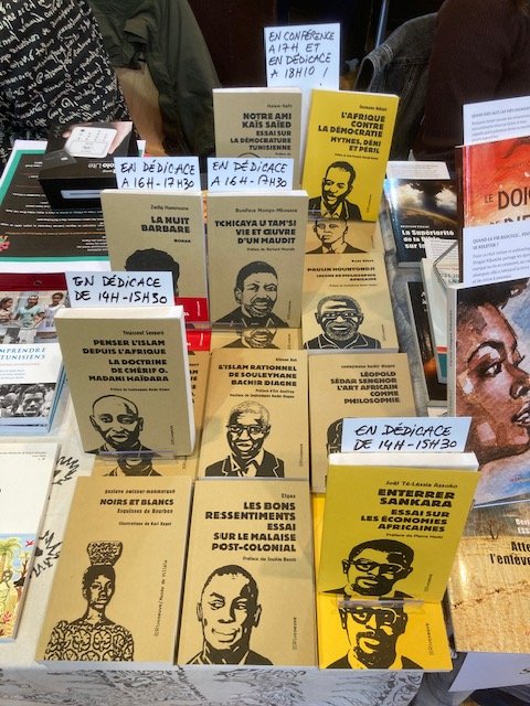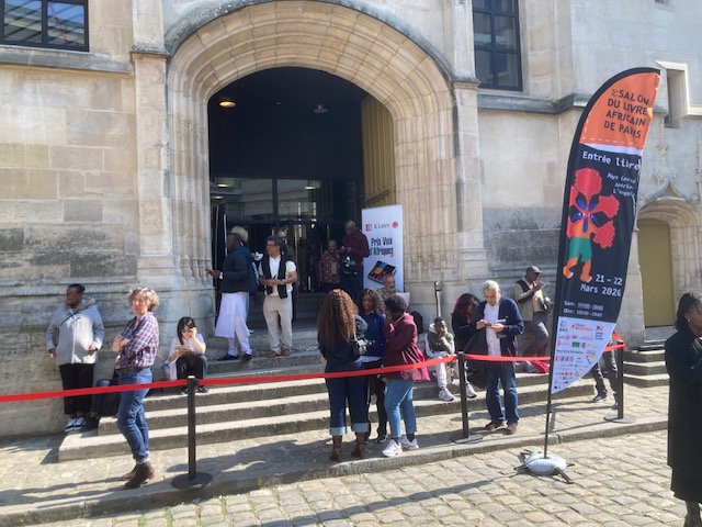 Une queue de plus de 50 mètres s’étirait dès le premier jour du Salon du Livre Africain dans l’après-midi de samedi 21 mars devant le Réfectoire des Cordeliers, en plein quartier latin. À l’intérieur, l’effervescence de toute la production de l’édition francophone et sur l’Afrique avec plus d’une centaine d’éditeurs venus de Tombouctou, Dakar, Antananarivo ou Paris et des libraires de Belgique (comme Ici sont les lions), de Madagascar (comme Mille Feuilles) ou d’Alger (l’historique Le Tiers Monde), sans oublier nos amis Pariso-persans du Tiers Mythe. Et près de 250 auteurs et autrices en dédicaces comme, chez Riveneuve, Loïc Hervouet et Éric Magamootoo, Youssouf Sangaré et Joël Assoko, Zadig Hamroune et Boniface Mongo-Mboussa et, en clôture après un débat « L’Afrique contre la démocratie » qui a réuni plus de 120 personnes avec le journaliste Pierre Haski et l’adjoint au maire Arnaud Ngatcha sous le feu nourri des questions de Léocadie Ebakissé, Ousmane Ndiaye et Hatem Nafti ! Cette 5e édition d’un salon qui monte, qui monte, est aussi l’occasion de belles rencontres ou retrouvailles comme l’éditrice romaine Barbara Ferri (qui publie Elgas), l’ancienne libraire en Égypte devenue consultante pour le développement du livre en Afrique Agnès Debiage, le directeur du salon Erick Monjour ou le gérant de la librairie La Petite Égypte dans le Sentier Alexis Argyroglo. Un succès confirmé par l’affluence du dimanche en dépit des premières chaleurs de printemps.