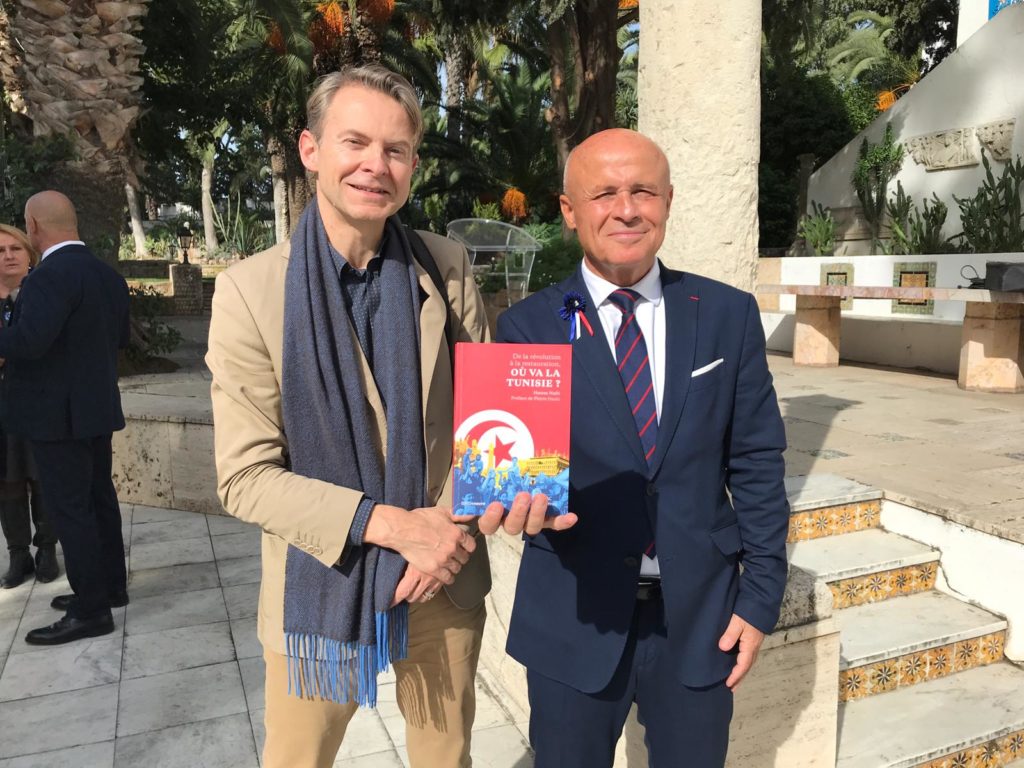 « Le livre qui tombe à pic », a résumé (en français dans les ondes) ce jeudi 14 novembre dans sa matinale le journaliste vedette de Express FM, la radio des décideurs. De la révolution à la restauration, où va la Tunisie ? de Hatem Nafti, préfacé par Pierre Haski, est en promotion à Tunis toute la semaine avec cinq radios (Misk, Mozaik, RTCI…), les webtv et sites (nawaat), outre les critiques annoncées dans les quotidiens La Presse et Al-Maghreb (arabophone) et 4 débats-dédicaces en librairies ou organisations (Kitab, Mille feuilles, FNAC, Atuge). L’ambassadeur Olivier Poivre d’Arvor a reçu son exemplaire et la société civile (le forum ou le couple Naccache d’intellectuels opposants à l’ancien régime comme le chercheur Larbi Chouikha) soutiennent à fond l’auteur. Seul point noir : l’avis de tempête et d’inondation mardi soir qui a vidé le centre-ville et la librairie Kitab où se faisait la première présentation. Sortie en France : le 28 novembre.