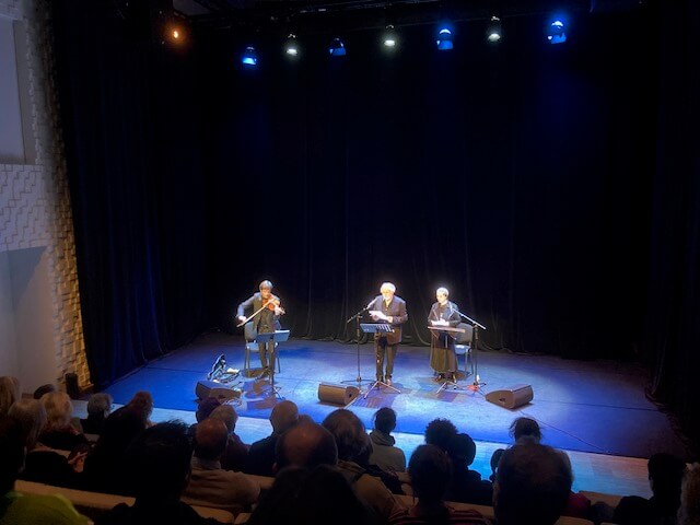 D’ailleurs, les maires d’Hérouville et de Luc-sur-Mer ont rejoint le public de plus de soixante-dix personnes, qui vibrent cet après-midi avec les improvisations, inspirées par Mozart ou Idir, du violoniste Manuel Decocq, et les lectures incarnées du comédien Éric Louviot et de la présidente du prix littéraire de Caen, Claudette Caux, qui campe alors une très crédible maman du narrateur.
