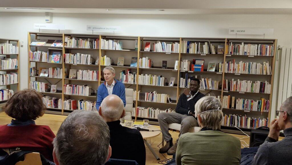 Le samedi 17 janvier, la rencontre avec l’écrivain-journaliste et sociologue Elgas, qui dirige la nouvelle collection Pépites Jaunes (chiffre 1 sur le « Nutri-score » de Riveneuve pour son premier anniversaire), a réuni plus de 25 personnes. En dialogue avec Gilles Kraemer, le directeur de Riveneuve, l’auteur a conquis son public en exposant la genèse de son titre Les bons ressentiments, essai sur le malaise post-colonial, paru en 2023 et désormais traduit en italien, en anglais et même en portugais au Brésil, où il ira prochainement pour une tournée de promotion.